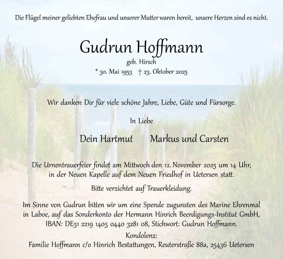 Gudrun Hoffmanngestorben am 23. Oktober 2025