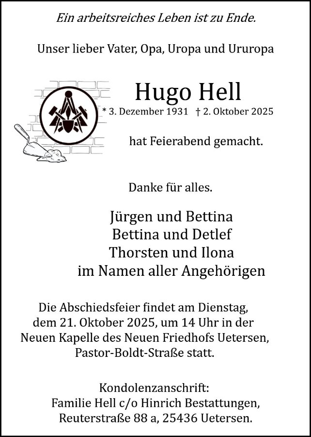 in diesen Tagen fühlen wir mit Ihnen und wünschen Ihnen von Herzen, dass Sie aus den glücklichen Erinnerungen Kraft schöpfen, um positiv in die Zukunft zu gehen. Diese Gedenkseite möge Ihnen dabei helfen, Ihre Trauer zu teilen und das Andenken gemeinsam wachzuhalten.