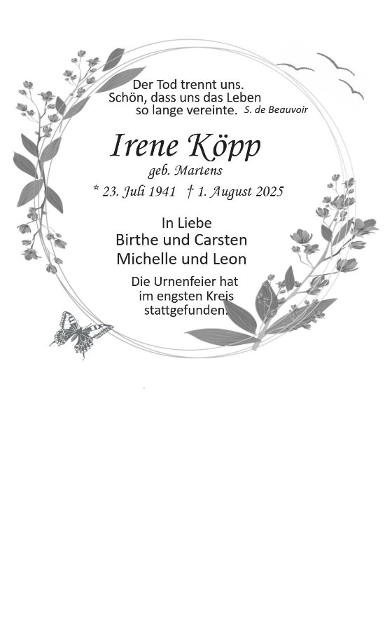 in dieser Zeit des Schmerzes wünschen wir Ihnen Kraft, den Verlust im Kreise Ihrer Liebsten zu verarbeiten. Als Zeichen unserer Anteilnahme und des Gedenkens entzünden wir dieses erste Licht. Möge diese Gedenkseite Ihnen helfen, Erinnerungen zu teilen und so das Andenken gemeinsam wachzuhalten.
