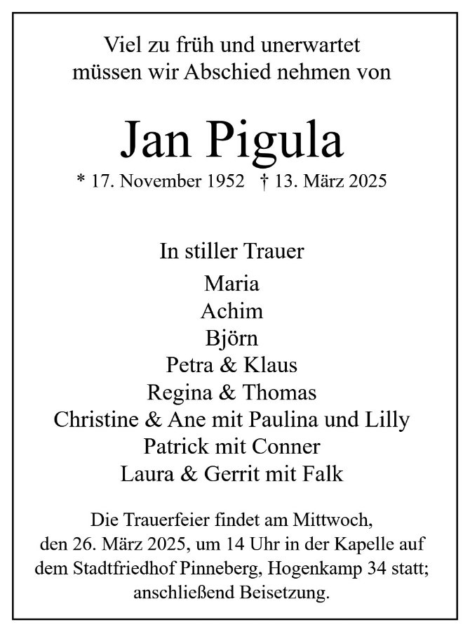 Jan Pigulagestorben am 13. März 2025